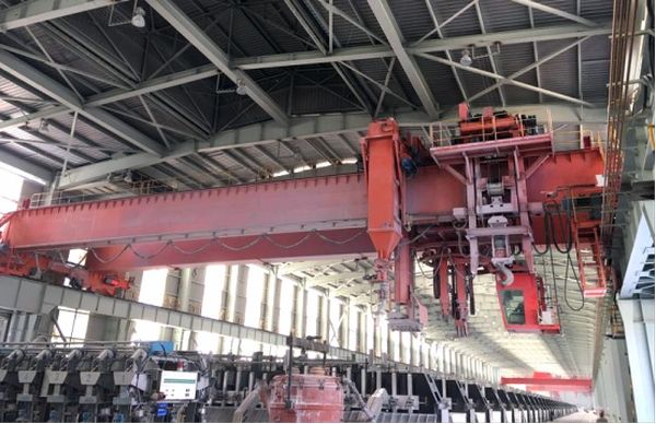 電解鋁多功能起重機(jī)是大型預(yù)焙陽(yáng)極電解鋁生產(chǎn)的關(guān)鍵工藝設(shè)備,能適應(yīng)高溫、大電流、強(qiáng)磁場(chǎng)、多粉塵及HF煙氣的特殊環(huán)境,它能完成預(yù)焙陽(yáng)級(jí)電解槽的下列工藝操作: